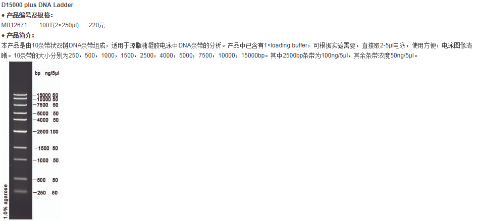 D15000 Plus DNA ladder Marker(250~15000bp)