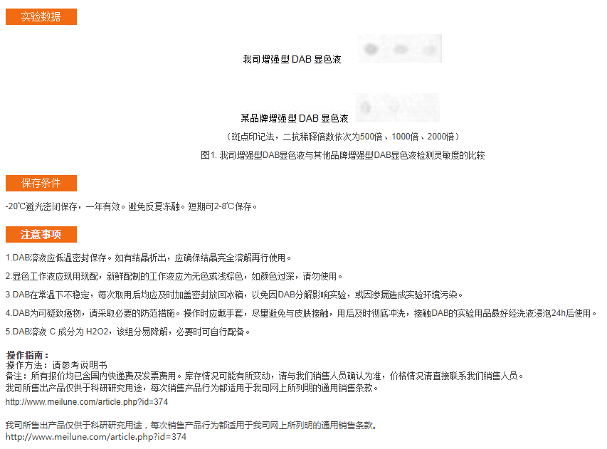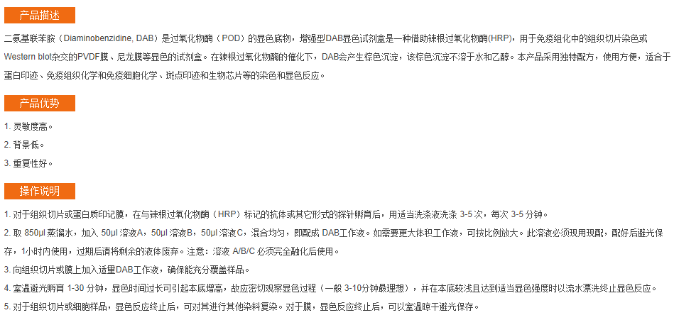 增强型DAB显色试剂盒(20×);DAB辣根过氧化物酶显色试剂盒