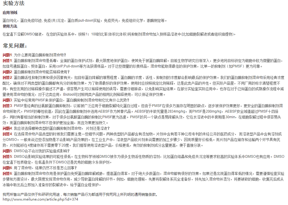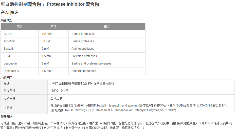 蛋白酶抑制剂混合物(不含EDTA,100X DMSO储液)