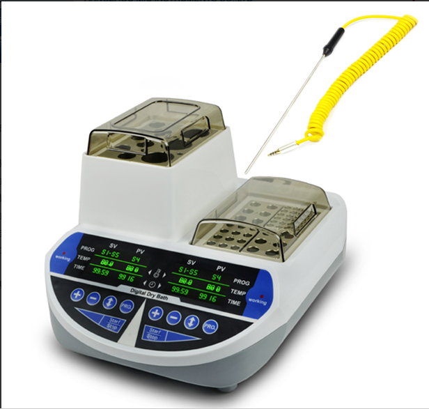 BTH-100D系列双控温干式恒温器是采用微电脑控制的恒温金属浴装置, 控温精度高,制样平行性好,以代替传统的水浴装置,可广泛应用于样品的保存和反应、DNA 扩增和电泳的预变性、血清凝固等。应用行业遍及医药、化工、食品安全、质检、环境等。BTC系列双控温干式恒温器是一款外观精美、性能卓越的新型恒温金属浴。